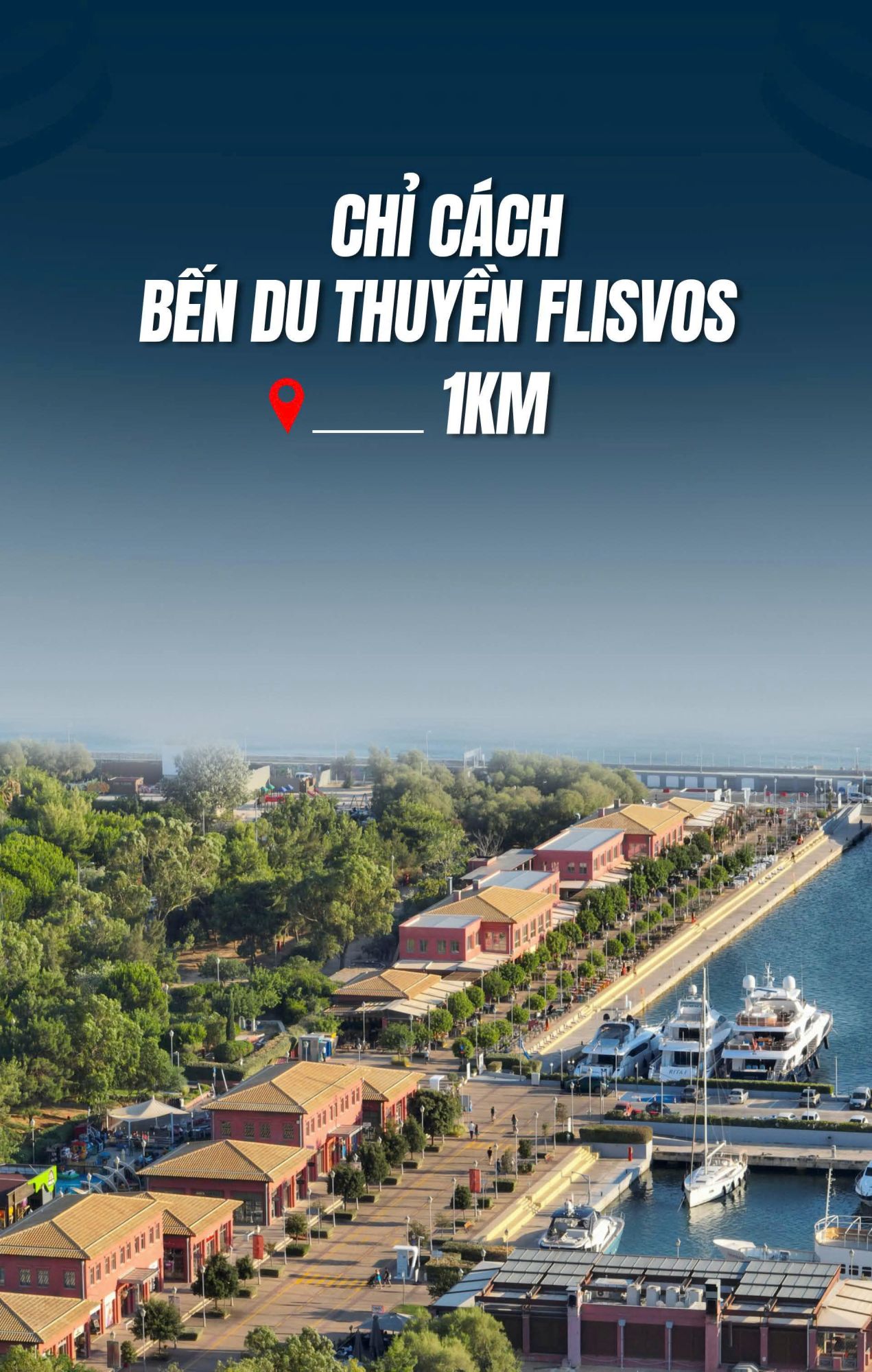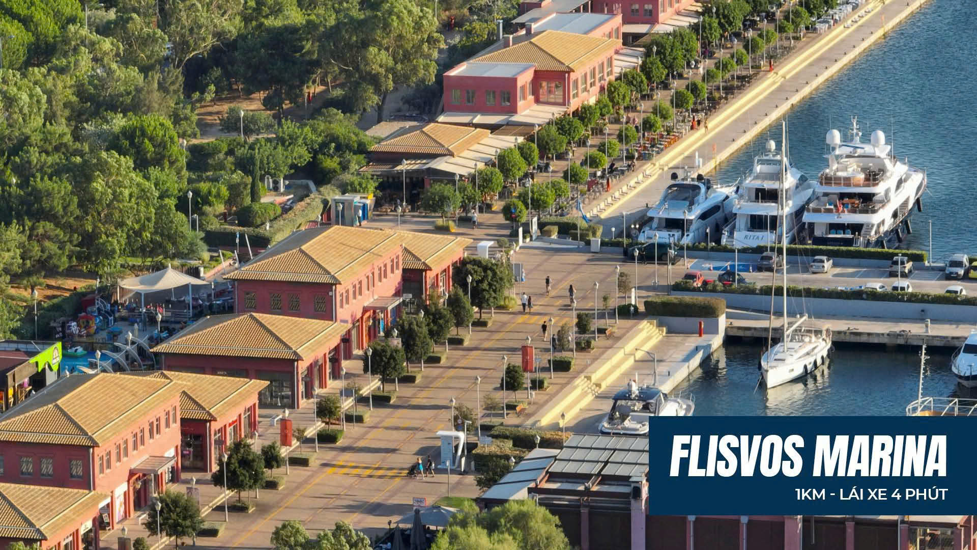 - 1km – Bến du thuyền Flisvos.