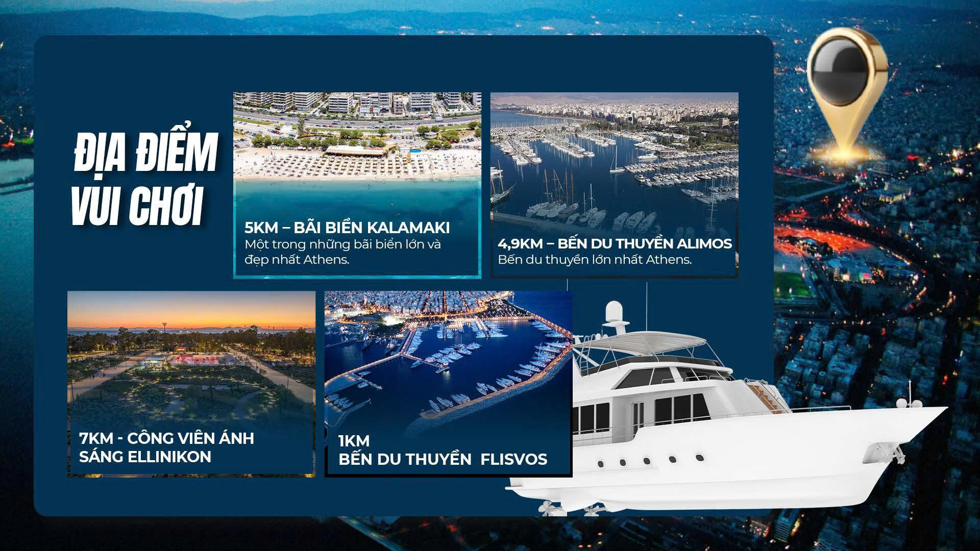 - Vui chơi & thể thao: Gần các bãi biển, bến du thuyền, công viên ánh sáng Ellinikon, thích hợp cho các hoạt động ngoài trời.